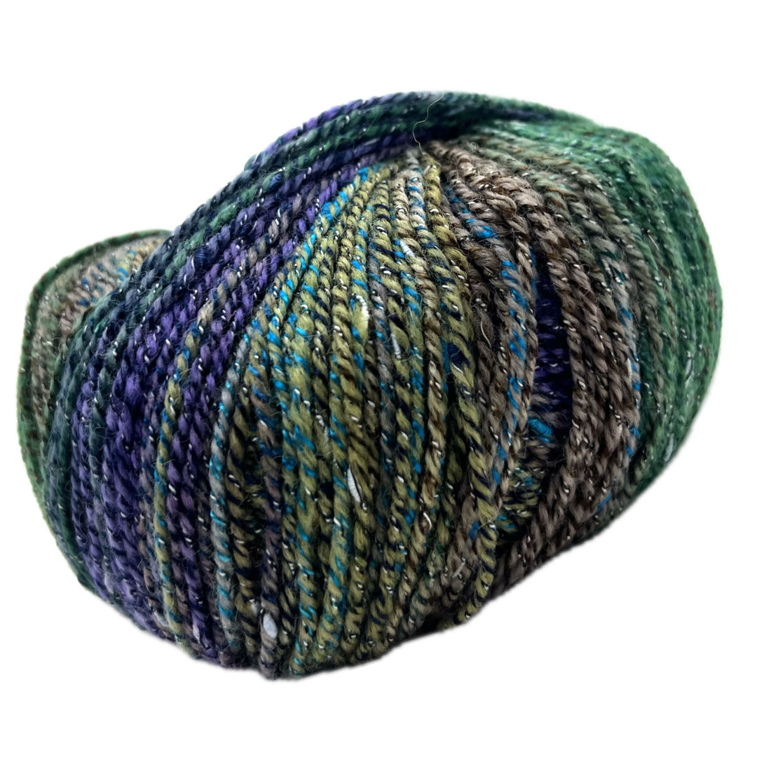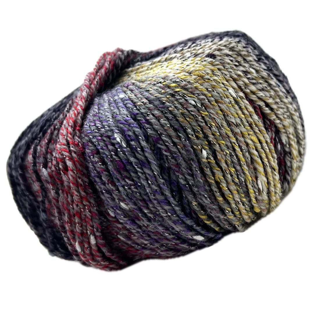 Wool, acrylic, cotton, and nylon come together for a colorful yarn flecked with color and texture. Pop your finished knit or crochet creations in the washing machine for easy care!