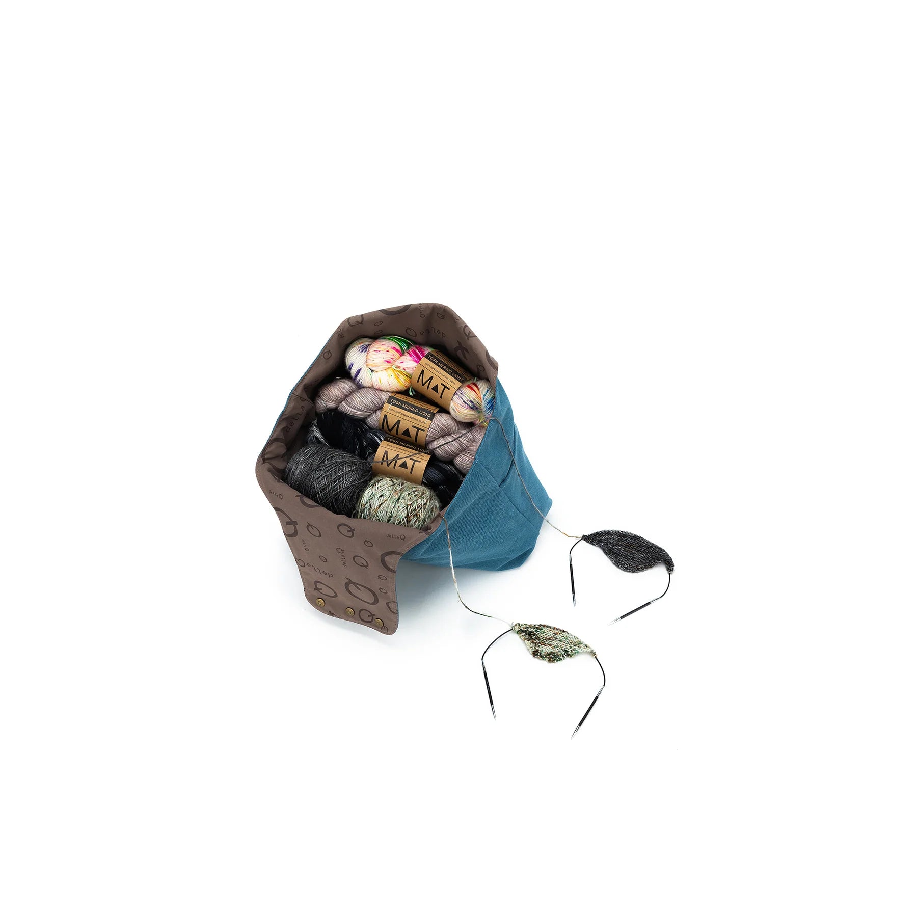 Building on the charm of the smaller Nora Wrist Bag, they've given it an upgrade! This bigger and better version features exterior pockets for added convenience and an interior zipper to securely store your notions. Simply un-snap the handles to transform it into a yarn bowl, making it the perfect companion for your crafting adventures.