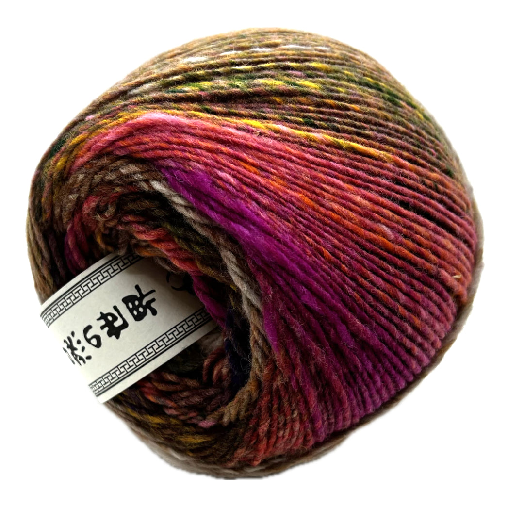 Noro Ito is a brilliant cake of their self-striping wool. With over 400yds per cake, Ito is ideal for sweaters and accessories alike! Loosely plied colors masterfully fade from one tonal shade to the next creating gorgeous colorwork in your projects. Ito is great for felting too!