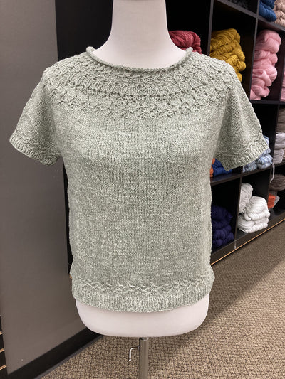 Yarn used in our sample (short sleeves): Saona by Wooldreamers, color Groen